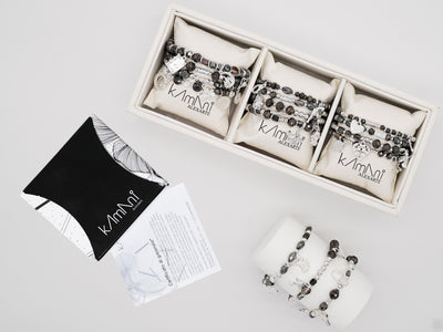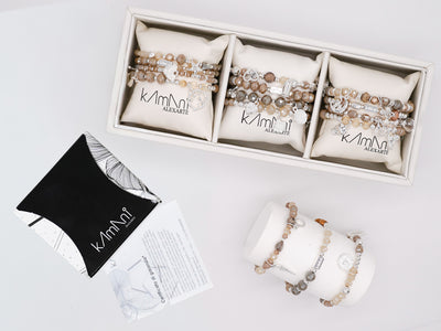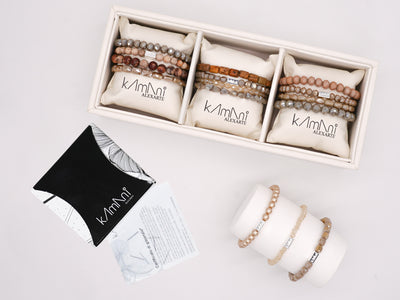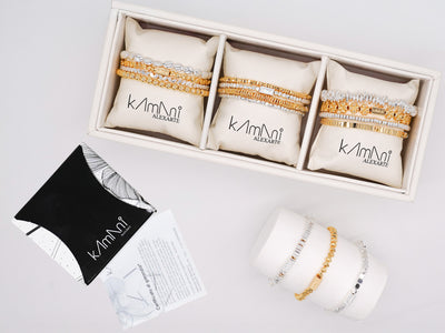 Questa collezione Kamani presenta 15 bracciali in pietre oro rosa e argento. Ogni bracciale è disegnato per aggiungere un tocco di fascino e unicità, perfetto per chi cerca uno stile giovane e raffinato. Questi bracciali sono ideali sia per un look quotidiano che per un'occasione speciale.