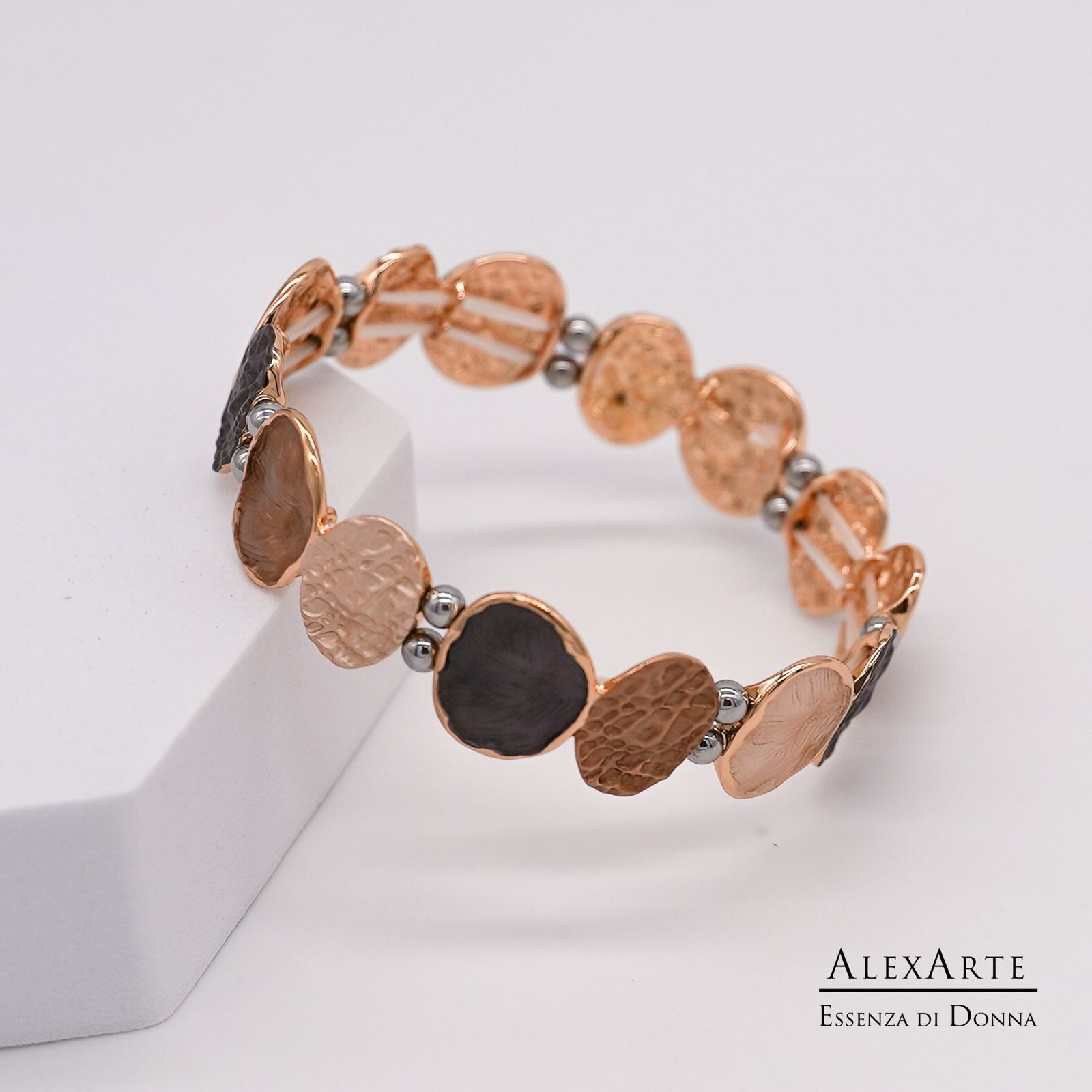 Ogni bracciale è realizzato a mano in lega anallergica nickel free, per garantire comfort e qualità artigianale, senza rinunciare all’eleganza tipica dello stile AlexArte.